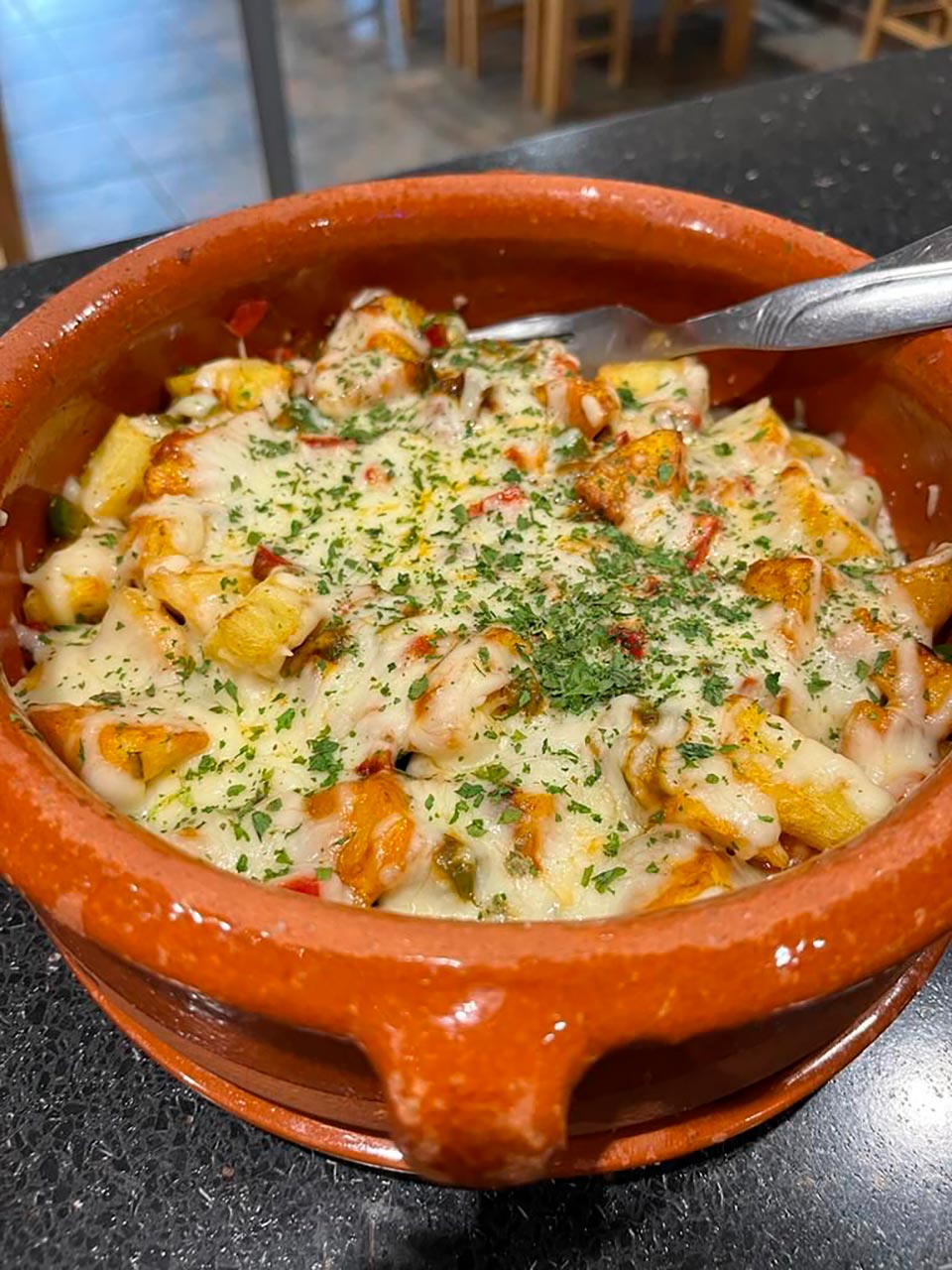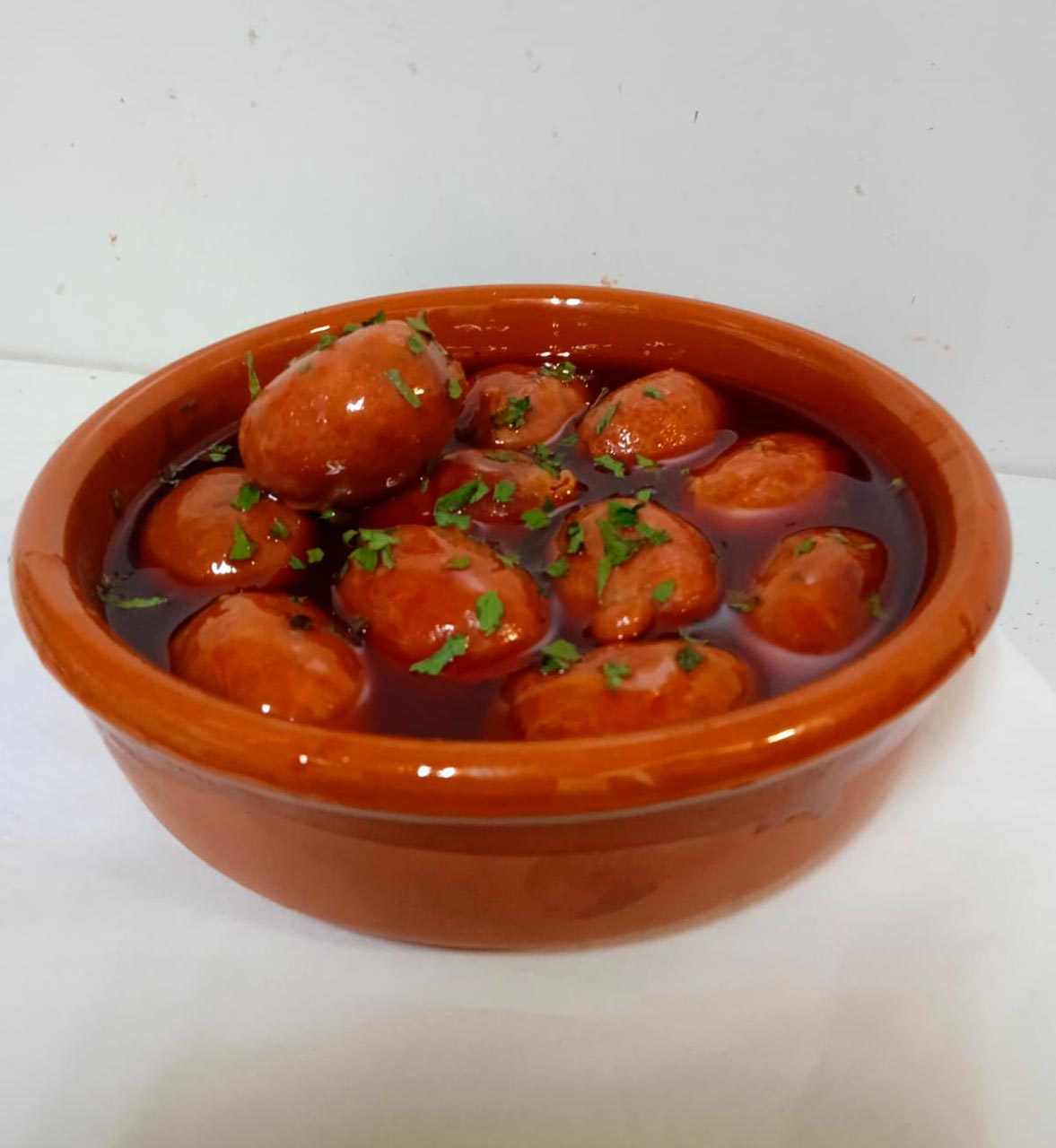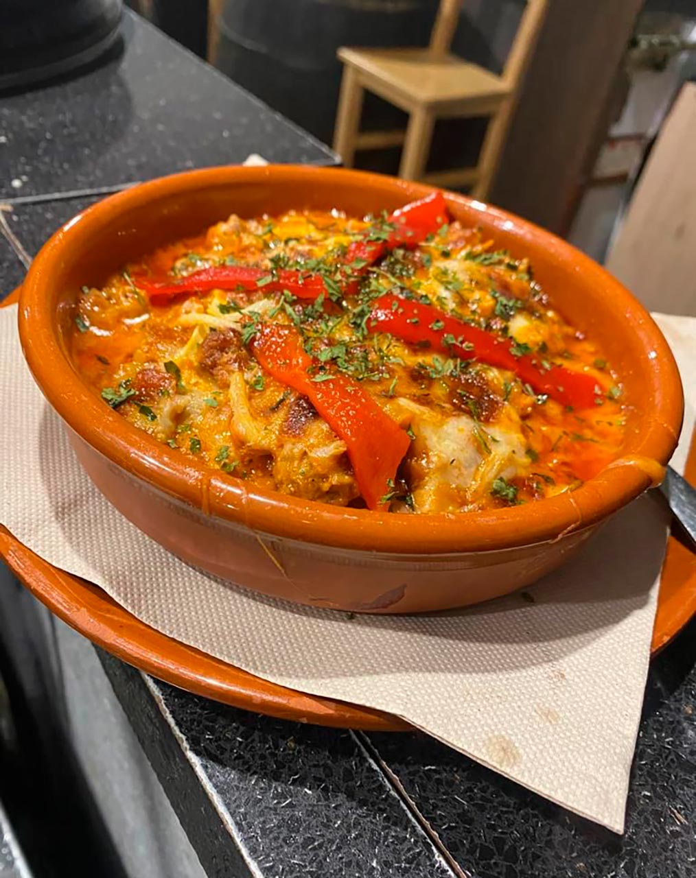 Tiene una gran variedad de tapas que cambia cada cierto tiempo. Las carrillera y la costillas guisada son la especialidad de la casa. Durante la semana sólo tiene servicio de mediodía aunque las pizzas y el raxo lo sirven a cualquier hora.