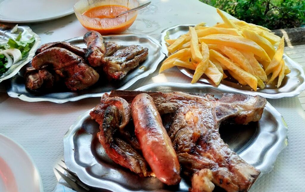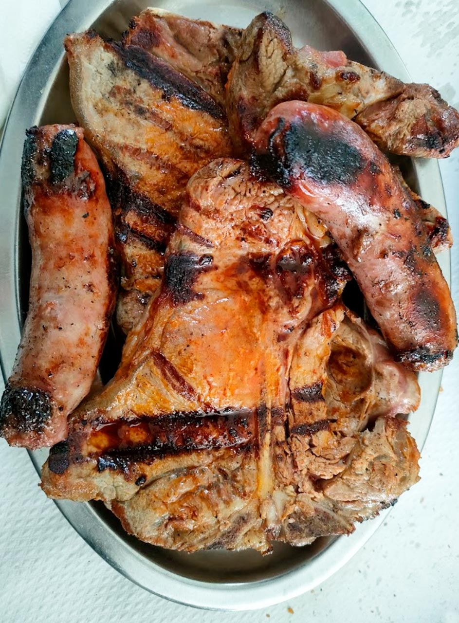 Menú del Día en horario de comidas siempre con 5 primeros y diversos segundos con churrasco, chuletas, merluza y una sugerencia diaria. Los jueves hay por encargo Bacalao al Horno, los domingos hay por encargo Bacalao a la Portuguesa y los sábados arroz de marisco.