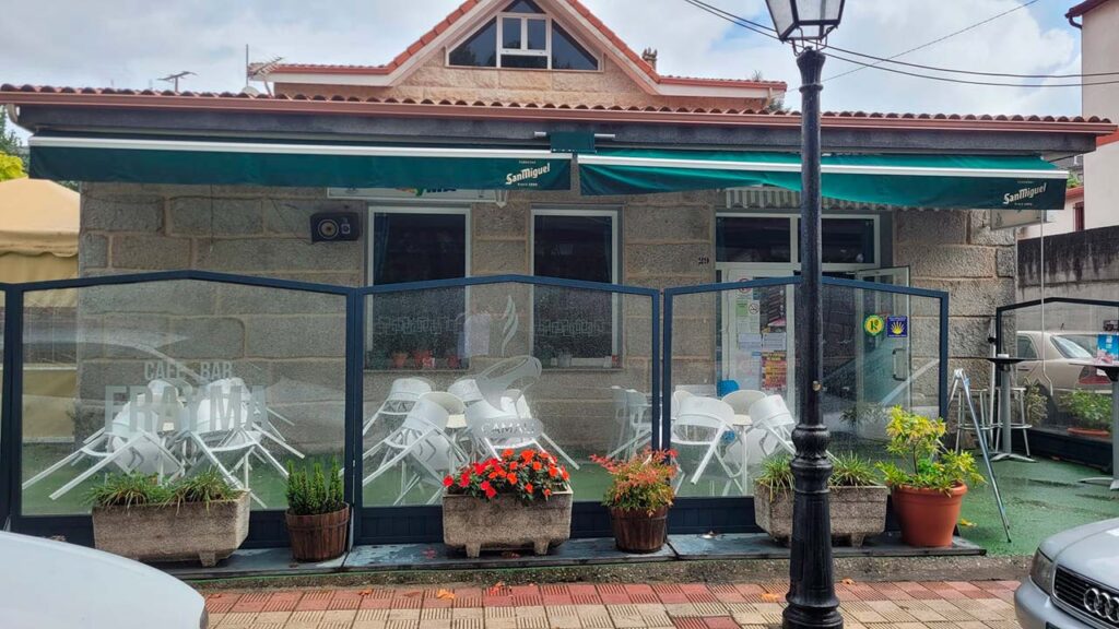 El Bar Frayma está situado en la Carretera de Portugal, 29 en el corazón de la localidad de Lobios (Ourense). El local cuenta con un comedor con una capacidad para 40 comensales y una pequeña zona de juegos con billar, futbolín y dardos.