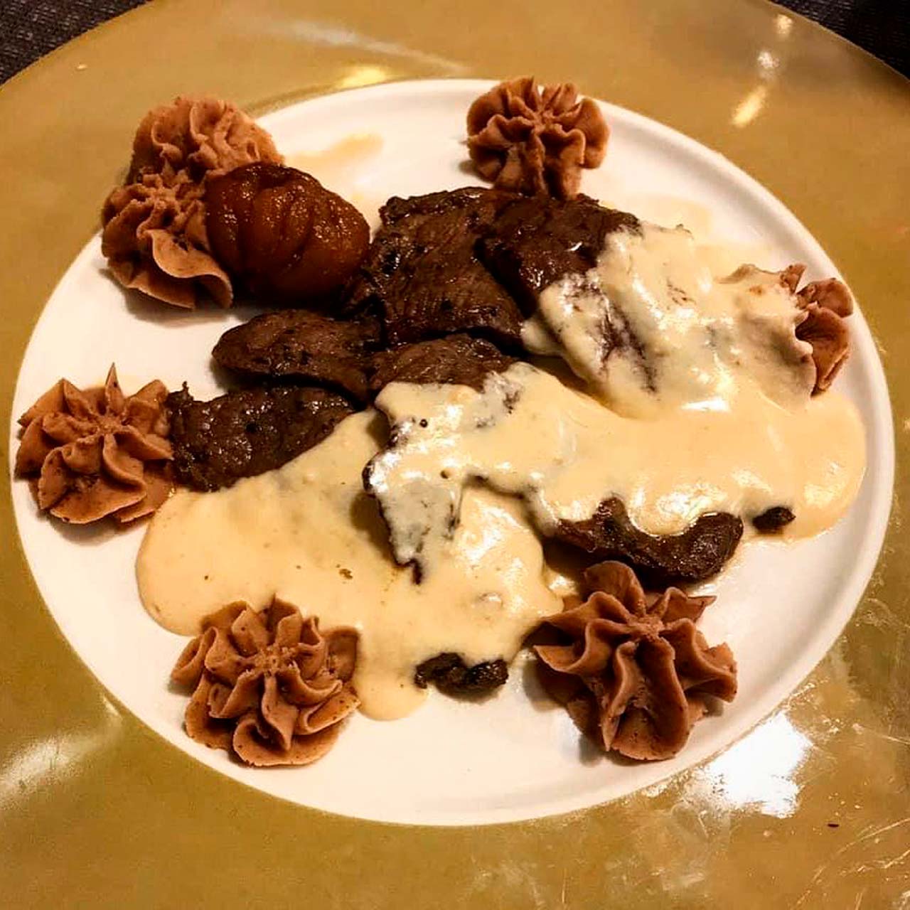 Croquetas de caza, jabalí con habas, arroz caldoso de corzo, guiso de ciervo y setas de temporada