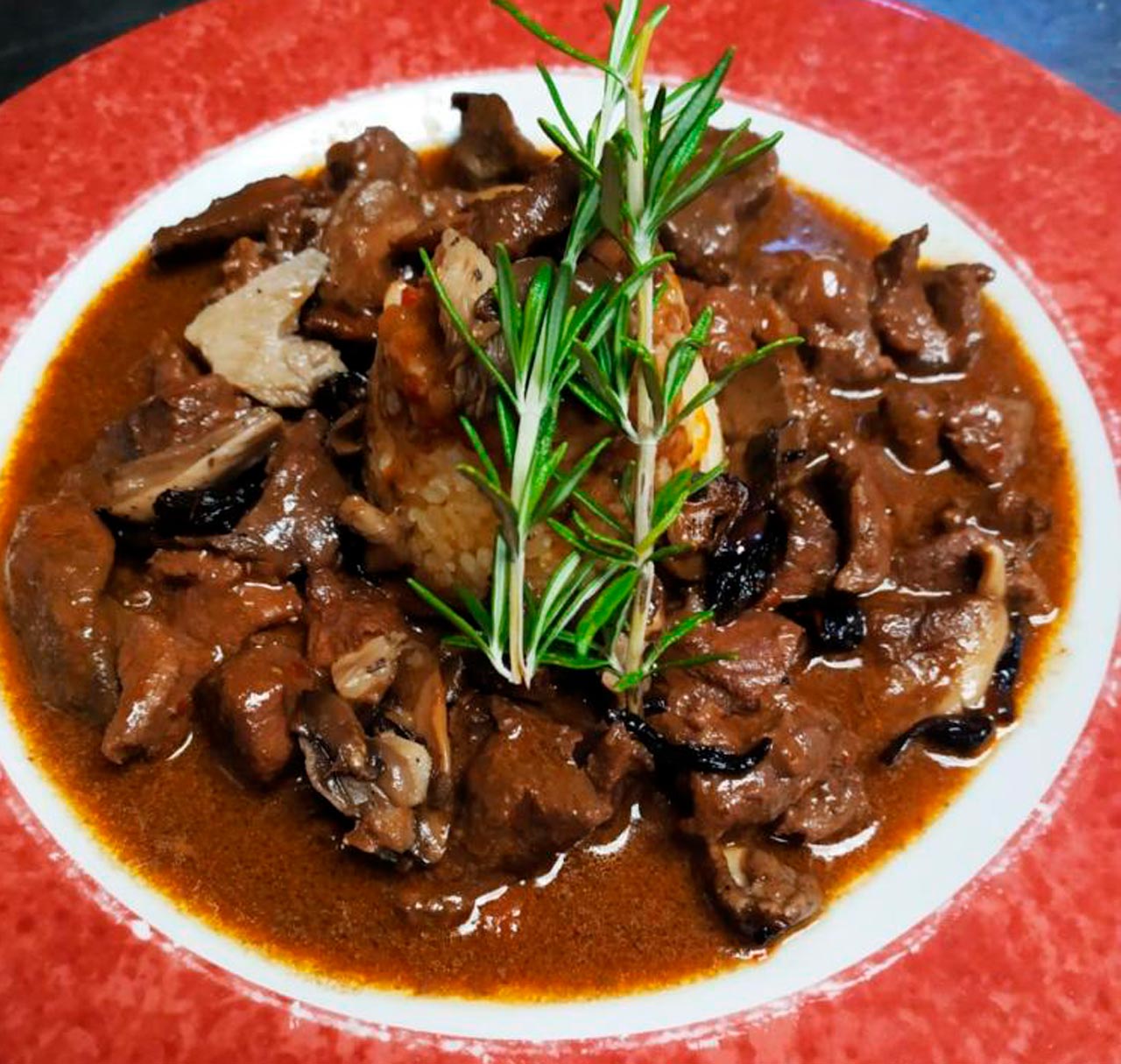 Ragout de ciervo estofado al estilo del Xurés con arroz blanco