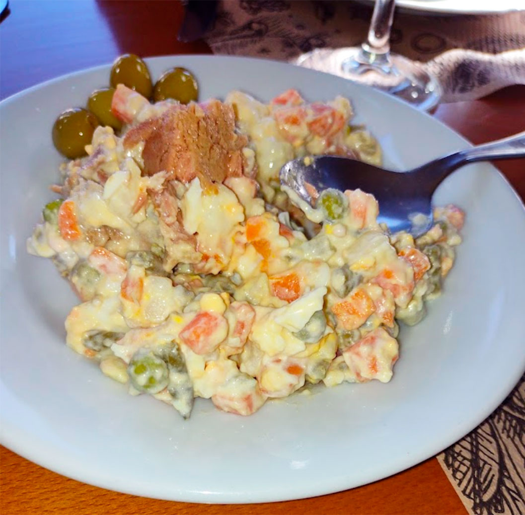 Plato combinado€ 10,00Filete a la plancha, ensaladilla rusa o de la huerta, huevos fritos con patatas, postre y bebida.