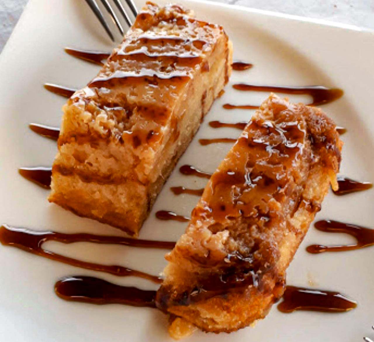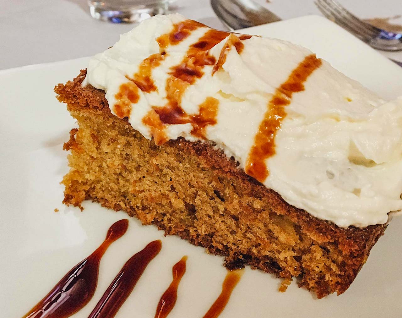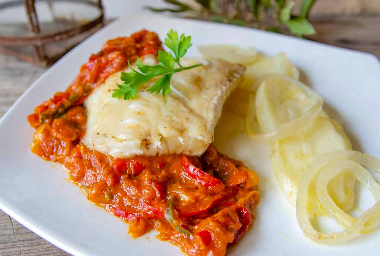 Bacalao al horno€ 16,20Con fondo de patata y cebolla con pasas flambeadas