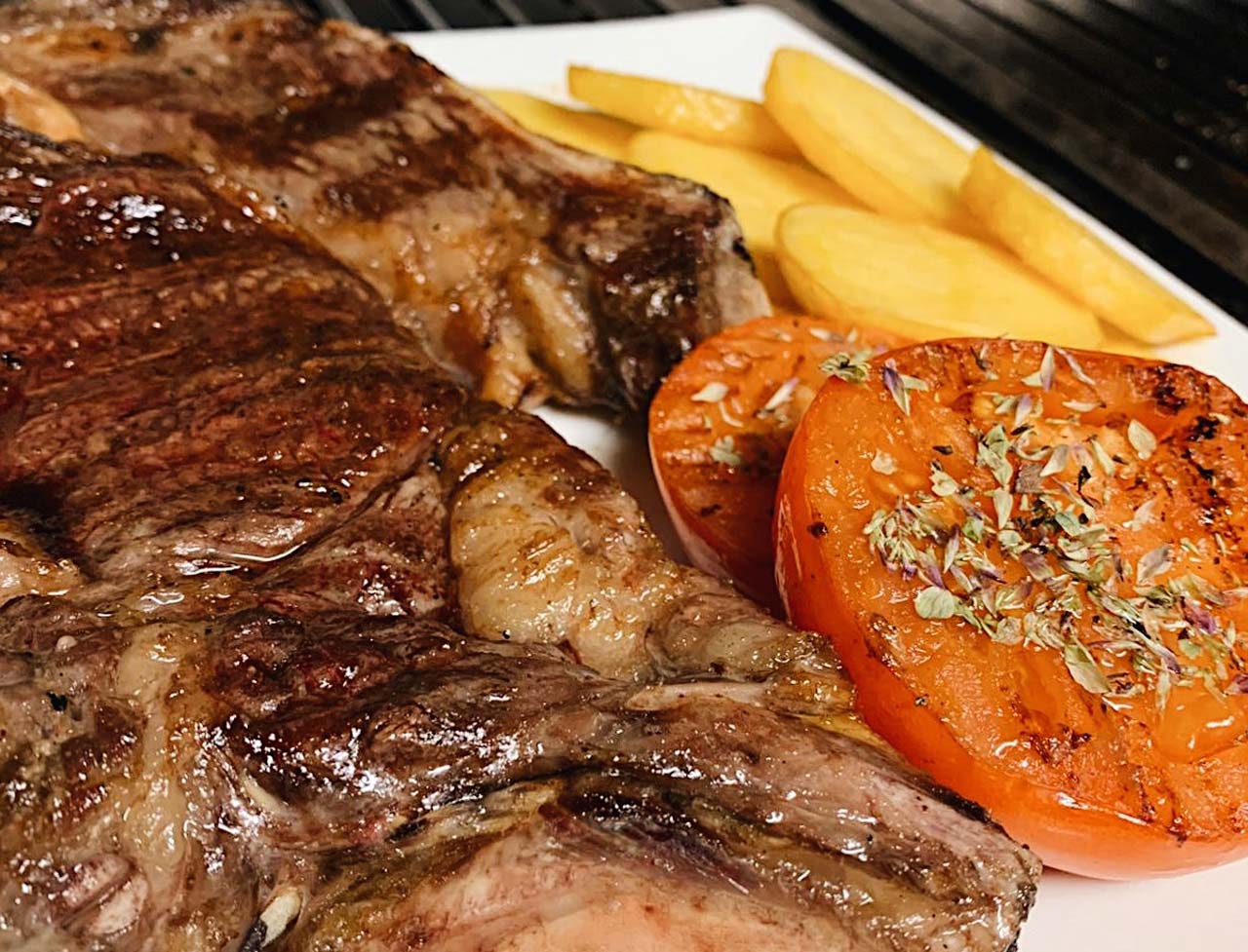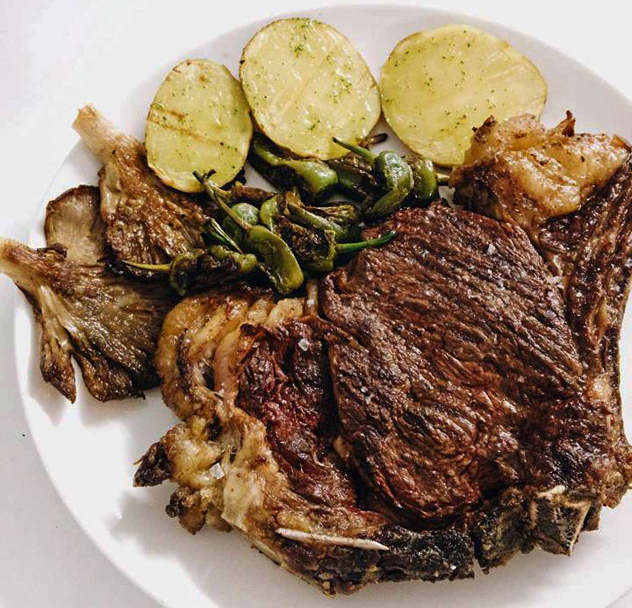Chuletón de vacuno mayor a la brasa€ 52,00Con guarnición de temporada (1kg)