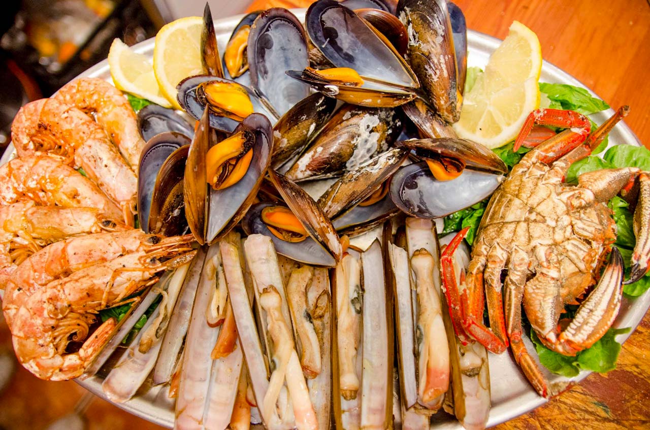 Carnes a la brasa, Bacalao, Pescados, Mariscos