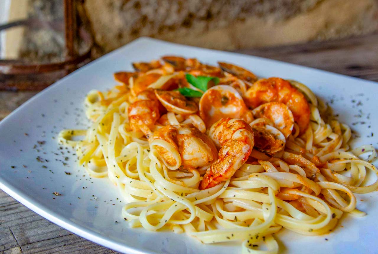 Vieira al horno€ 8,60Con gambas y cebolla caramelizada
