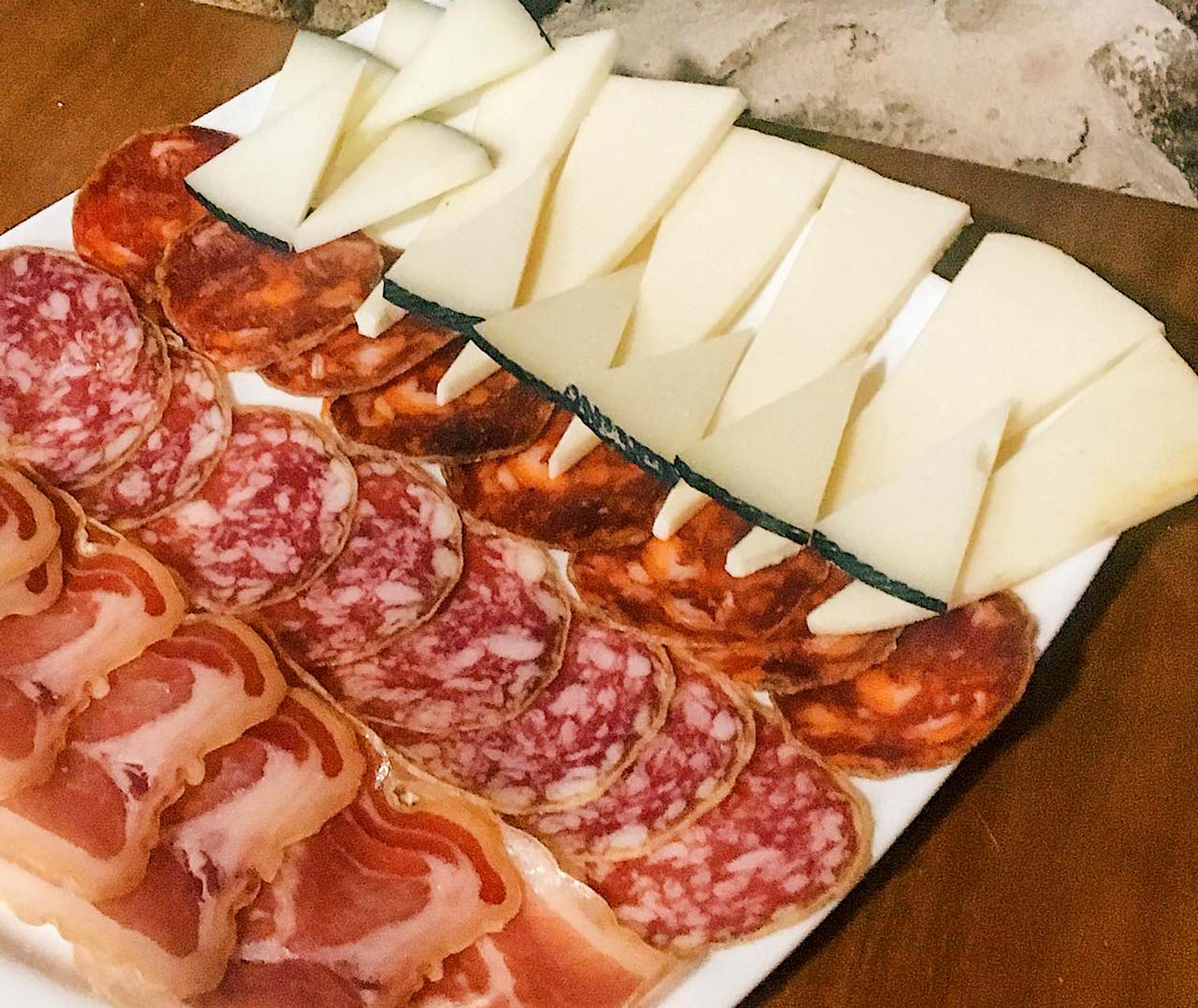Tradicional€ 8,50Tostadas con pan de nueces, con mantequilla o tomate, embutidos, bizcocho casero, zumo de naranja, mini cruasán relleno y café, infusión o Cola-Cao