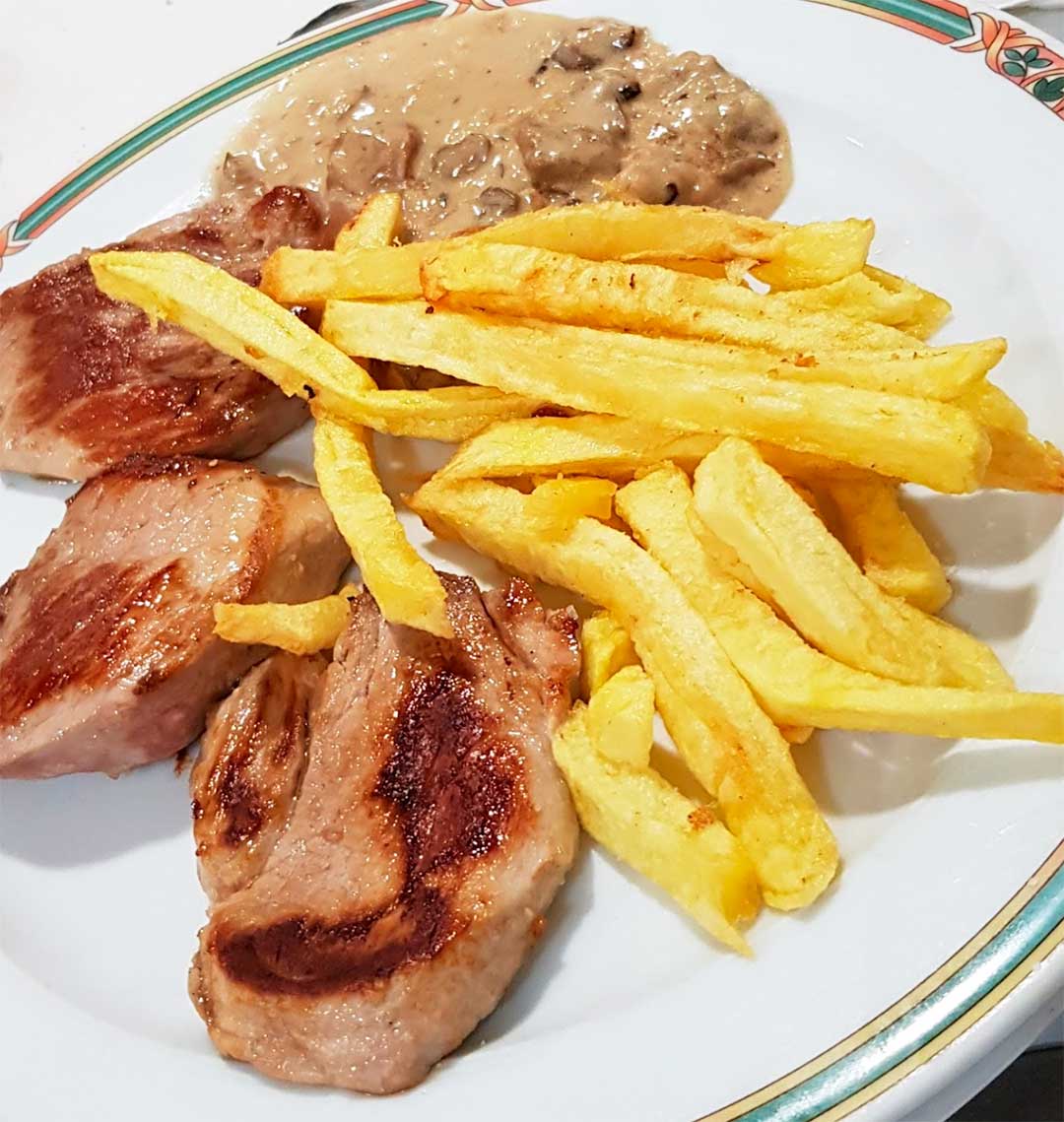 Tienen a disposición del cliente un Menú del Día de lunes a viernes por 10 Euros y otro de fin de semana por 15 Euros, disponibles en servicio de comidas y cenas, además de servicio a la carta, en la que destacan el churrasco y la merluza a la cazuela como especialidades de la casa.