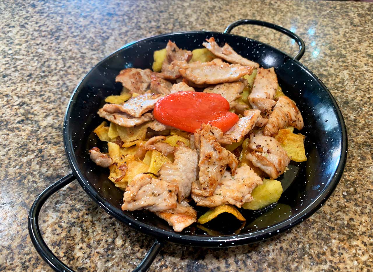 Huevos, lomo y patatas€ 8,50