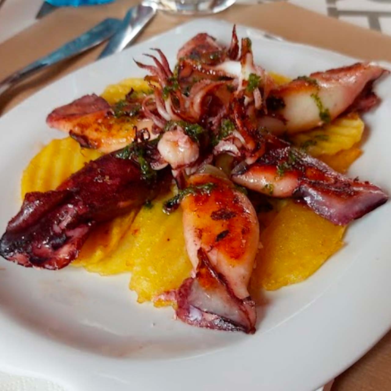 Chipirones a la plancha€ 9,00Chipirones plancha, patatas fritas panaderas, cebolla y salsa verde.