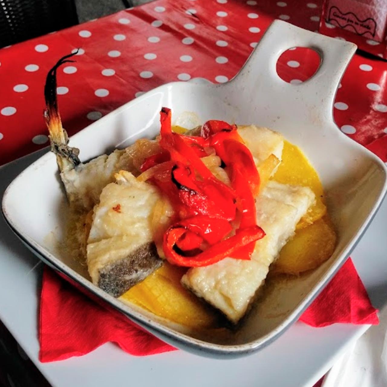 Bacalao al horno€ 13,00Bacalao al horno, patatas, pimiento y cebolla