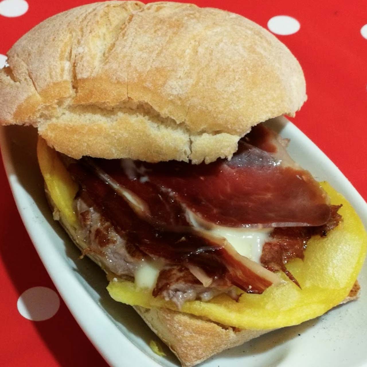 Hamburguesa de cerdo ibérico€ 6,00Hamburguesa de 160 grs, tomate, cebolla, queso y patatas fritas.