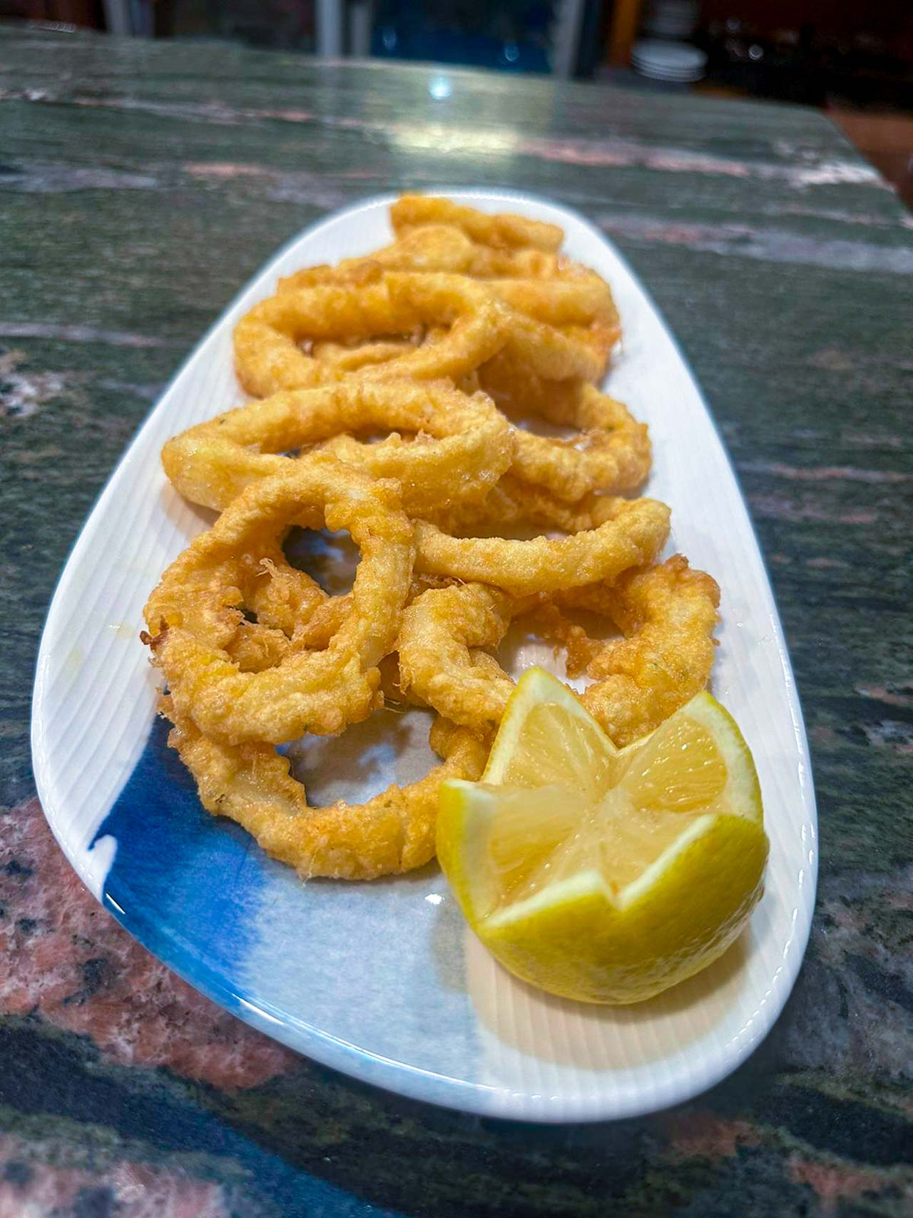 Calamares frescos a la romana€ 16,00Fritos al momento