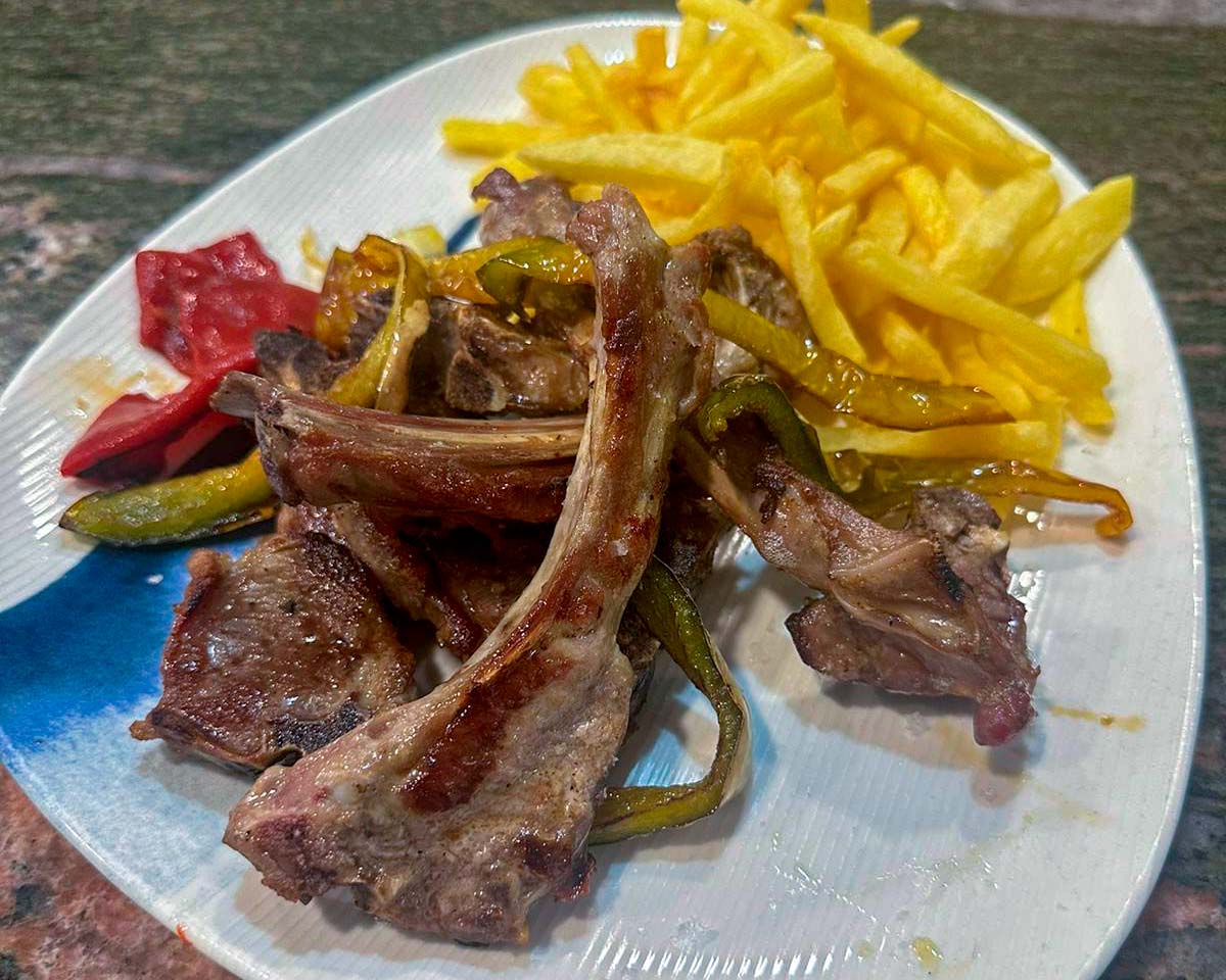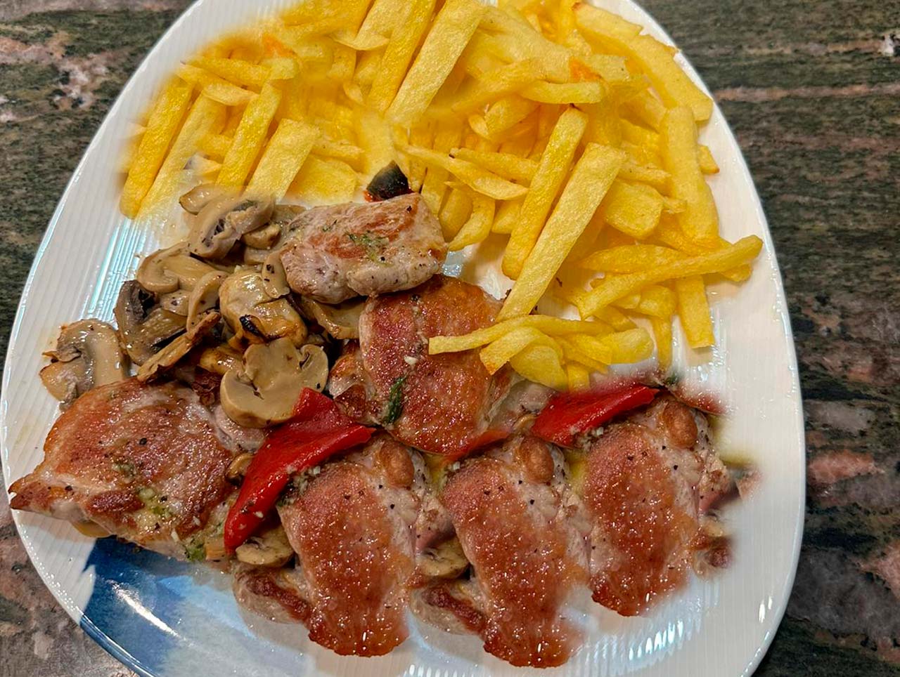 Cordero Casero€ 22,00Chuletillas y paleta de " A Serra do Xurés" a la plancha on parrilla con patatas fritas y salsa casera.
