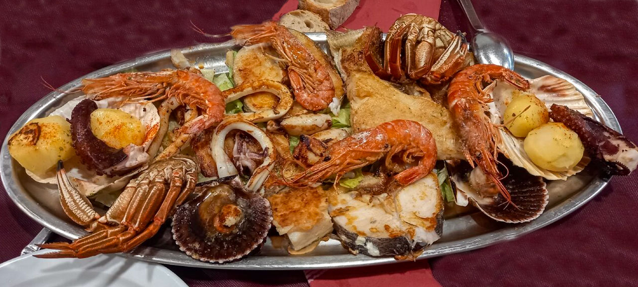 Parrillada de pescado/marisco€ 60,00(2/3 personas) Según día: merluza, salmón, sepia, bacalao, lenguado, chipirón, gambas, calamar, langostinos y guarnición.
