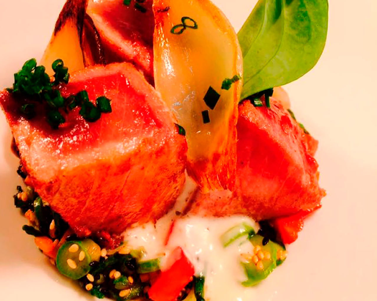 Crujiente de langostinos y mahonesa de teriyaki