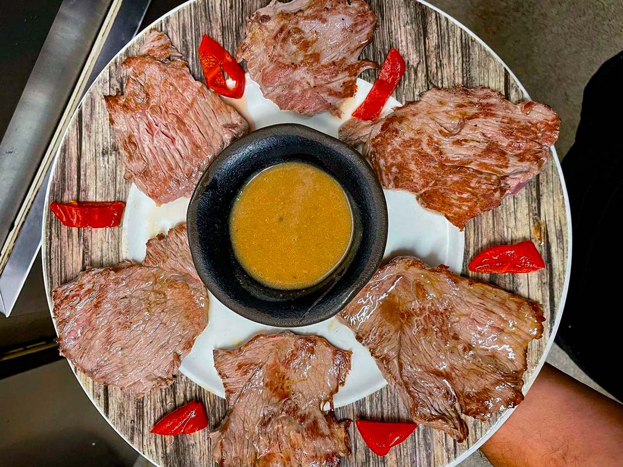 En su carta no faltan pinchos y tapas variadas de brochetas, tablas de ibéricos, parrillada de verduras, ensaladas y Menú del Día (Sólo mediodías) de pechuga de pollo, merluza, huevos rotos, escalope de ternera, chipirones o chuleta de cerdo.