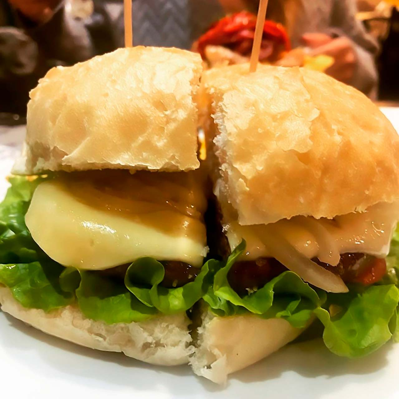 Hamburguesa de buey€ 9,00Con queso, lechuga, tomate, cebolla y patatas fritas.