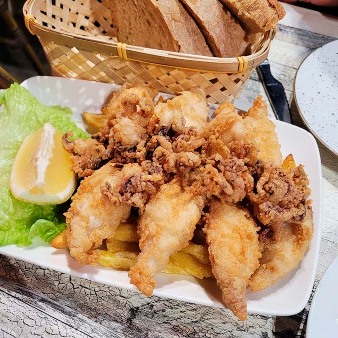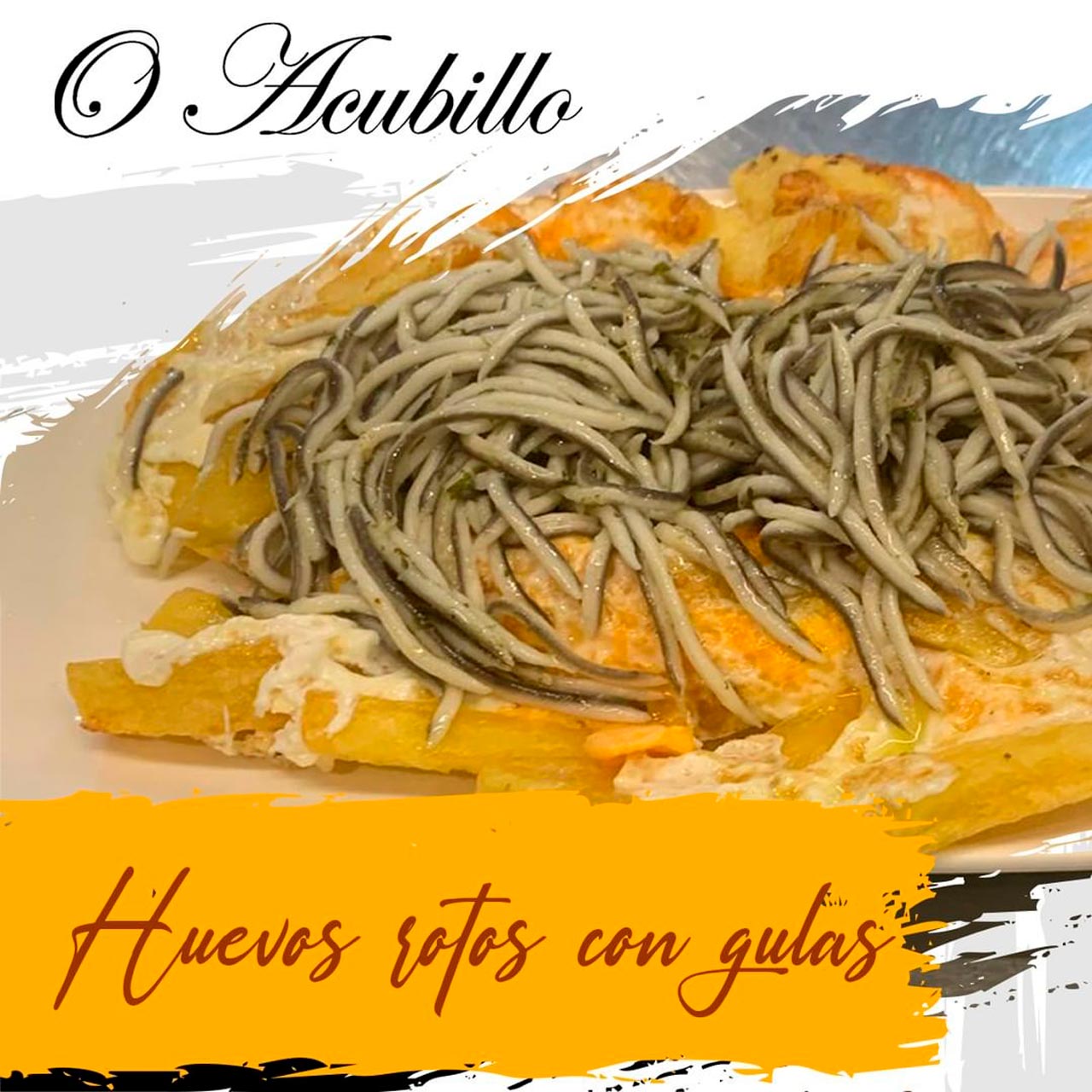 Huevos rotos con gulas€ 12,00Huevos, patatas fritas y gulas