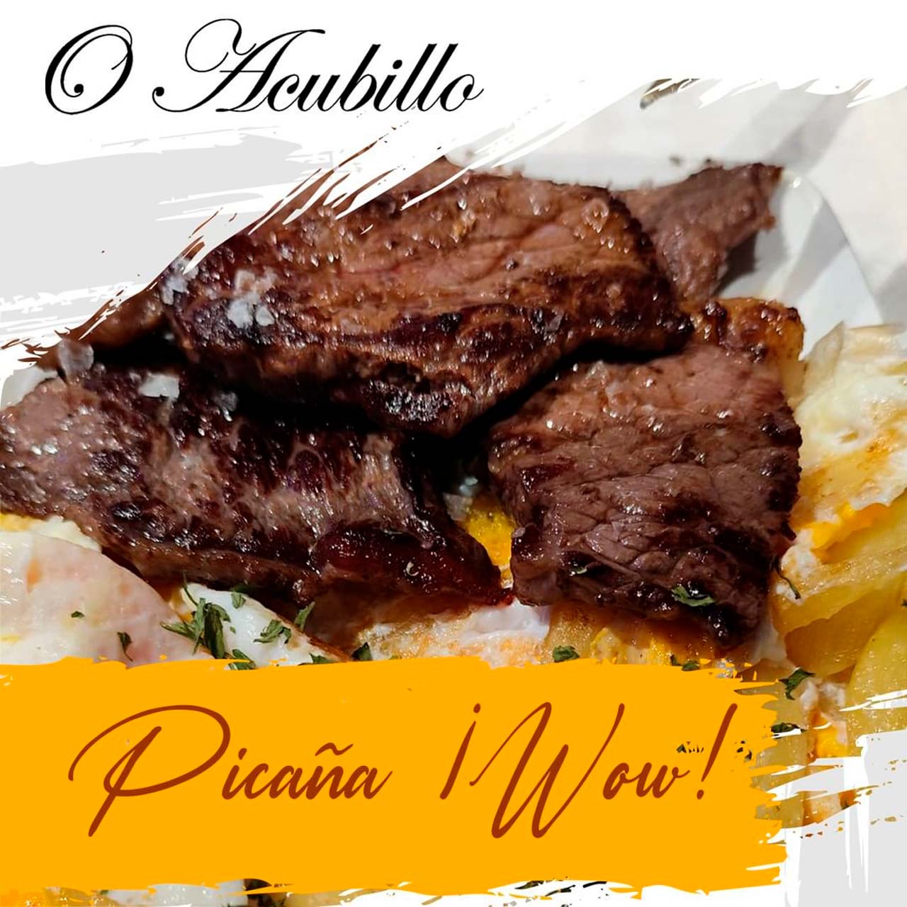 Sus 20 años de experiencia se demuestran en su variada y exquisita carta en la que destacan los platos de Picaña, espectacular, jugosa y de primera calidad, y las Sartenes, aunque no dejan indiferentes a nadie su tortilla, las ancas de rana, los chipirones, las zamburiñas y sobre todo el Pulpo «Á Feira» o a la plancha. También disponen de ensaladas frías y templadas, hamburguesas, huevos rotos, croquetas, langostinos, tablas de quesos, …