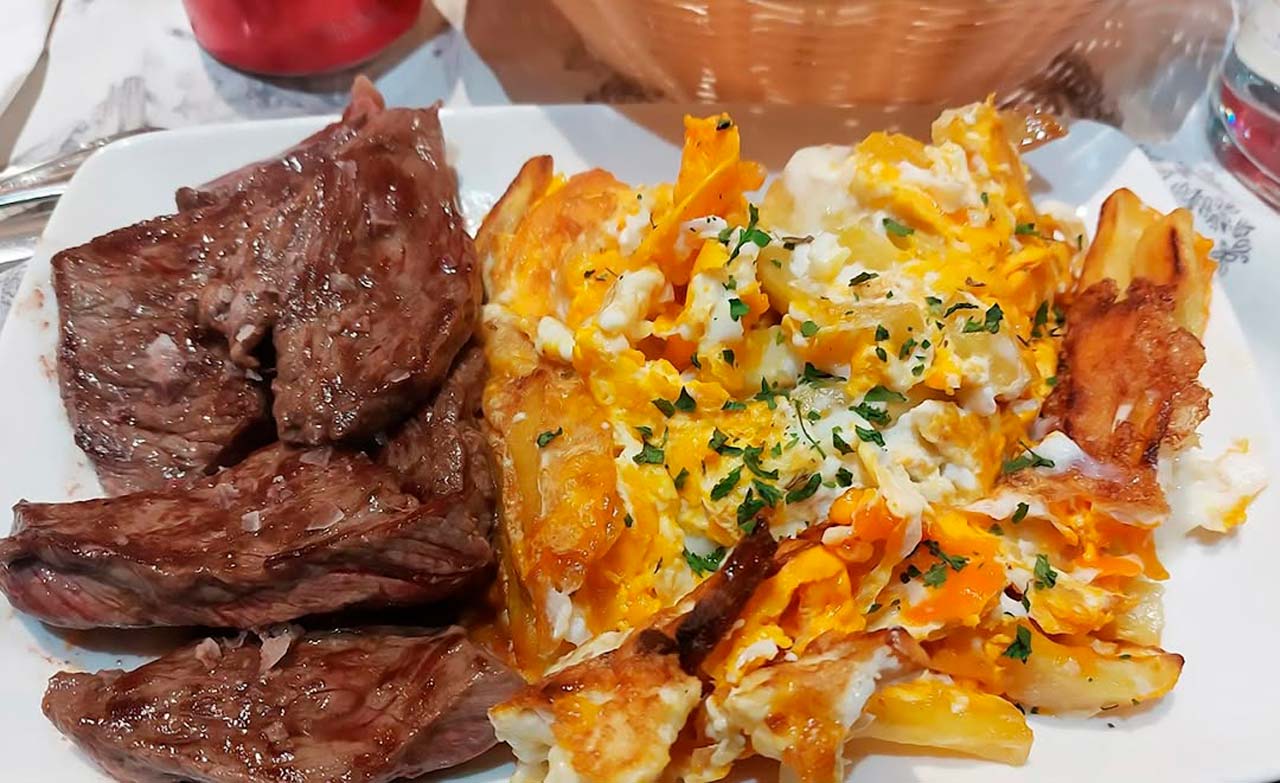 Huevos Rotos con Picaña€ 16,00Huevos, patatas fritas y picaña de buey