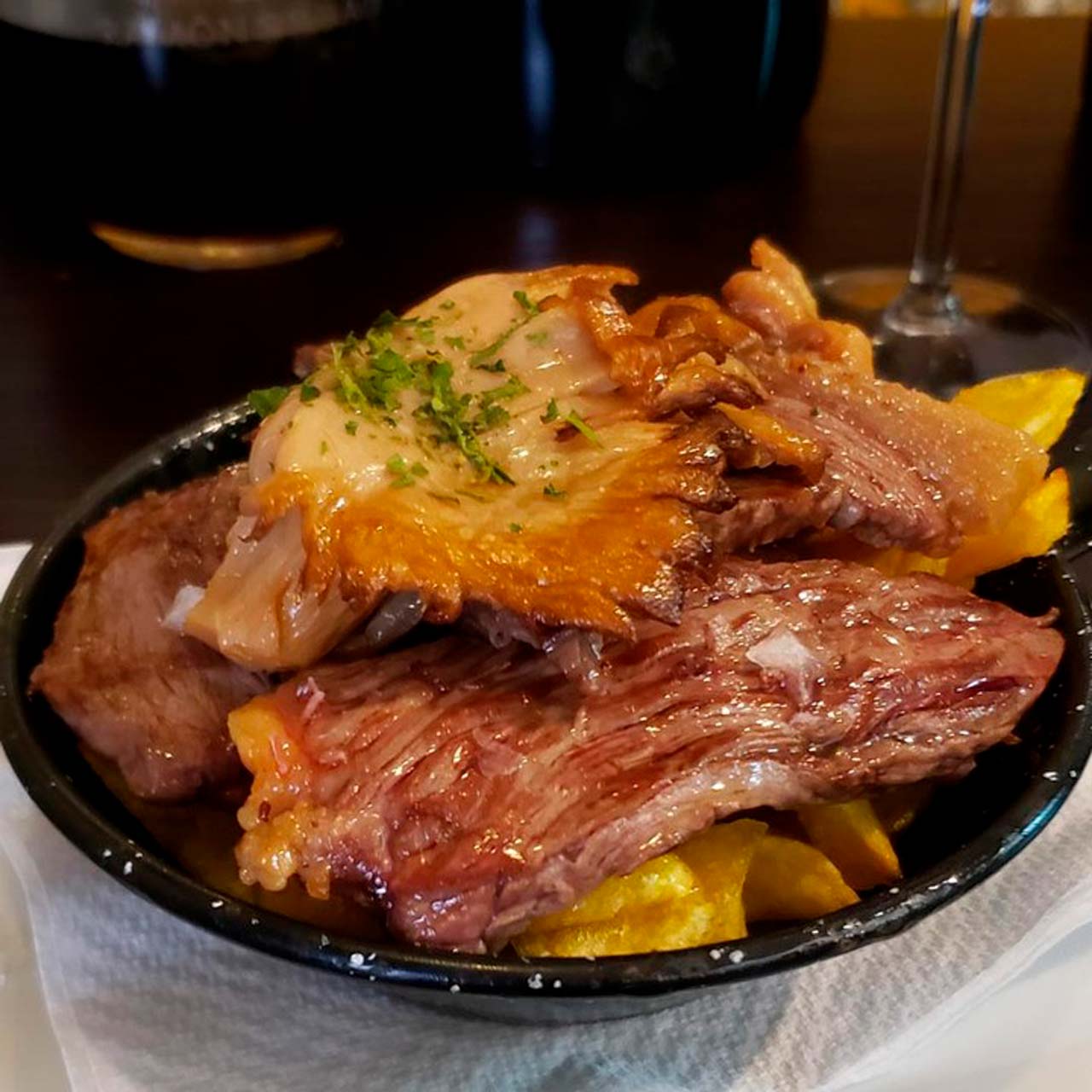 Sartén de raxo€ 9,00Lomo de cerdo y criollo, con patatas fritas y pimientos de piquillo