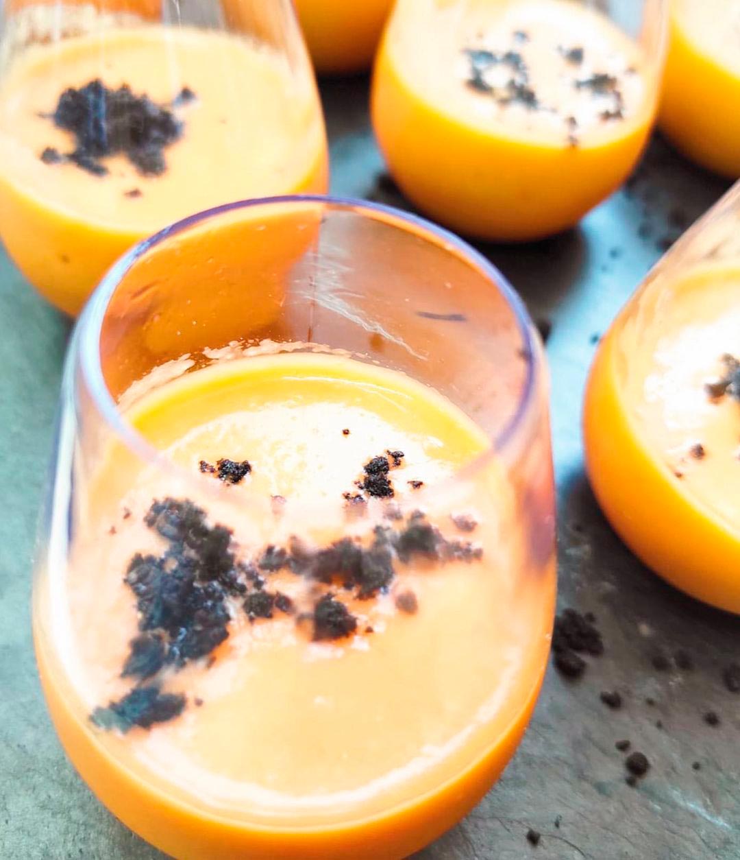 • Cremoso de chocolate y ron con sopa de chocolate blanco, helado y teja crujiente